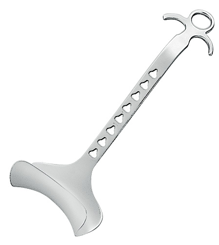 A surgical instrument designed for retracting and holding back the edges of a wound or surgical incision, facilitating visibility and access to the operative area. It features a handle and a hooked end, which can be placed in the edge of the tissue to maintain tension and exposure during procedures.